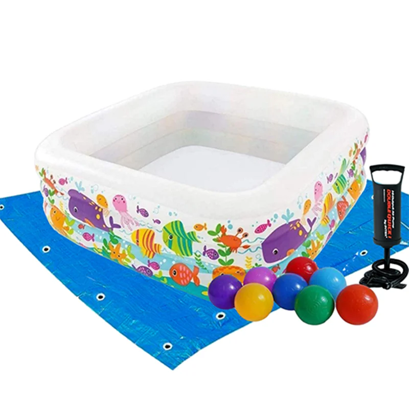 استخر بادی کودک اینتکس مدل آکواریوم مربعی محصولی ویژه و جدید است که توسط شرکت اینتکس تولید شده و توانسته رضایت خاطر خریداران را جلب نماید. این استخر بادی با برخورداری از کیفیت بالا و طراحی زیبا، بهترین گزینه برای استفاده در فضاهای مختلف بوده و با ابعاد بزرگ، محیطی مناسب برای بازی های کودکان به صورت دسته جمعی را در اختیار آن ها قرار می دهد. به این ترتیب می توان به خوبی آن را مورد استفاده قرار داد و با قرار دادن آن در فضاهای باز، مانند حیاط ویلا و باغ، فضایی ایده آل برای بازی بچه ها فراهم کرد.