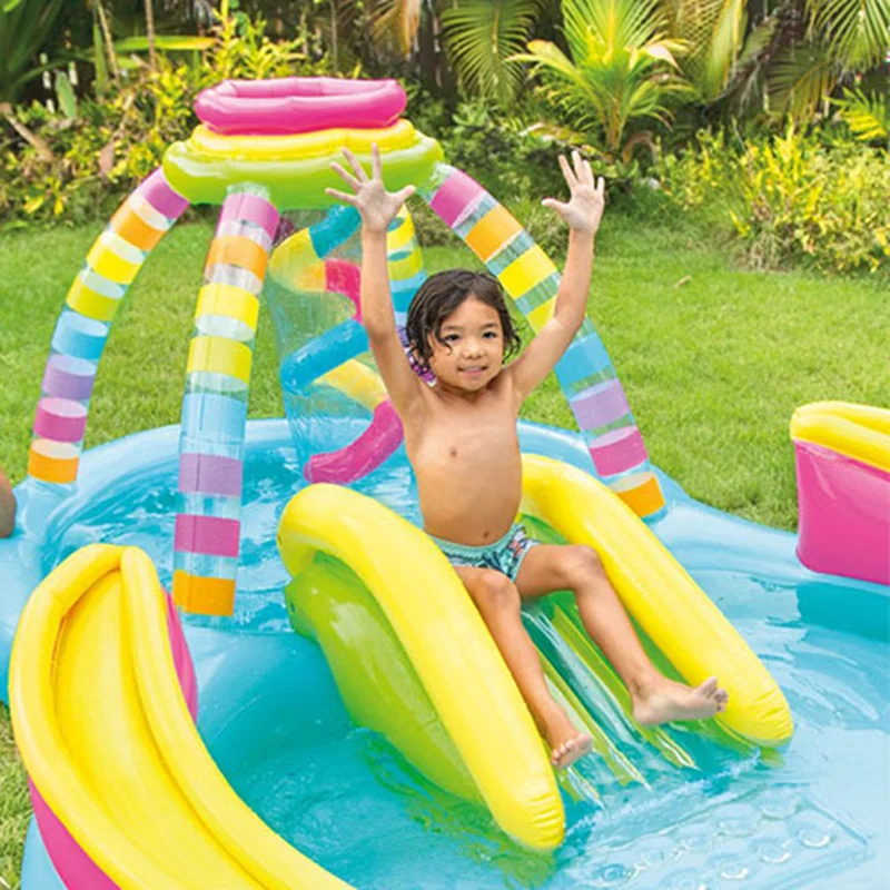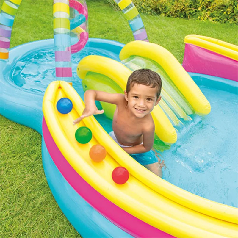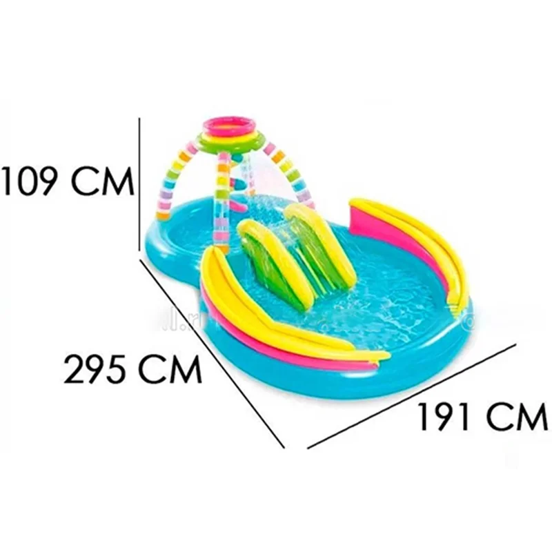 استخر بادی کودک اینتکس مدل رنگین کمان با سرسره و آبپاش محصولی جذاب است که با ارزان ترین قیمت و بالاترین درجه کیفی از طریق سایت سنتر اینتکس قابل خریداری می باشد.