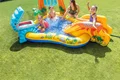 استخر بادی کودک سرسره دار اینتکس طرح ماقبل تاریخ یکی از برترین نمونه های استخر بادی کودک است که با ارزان ترین قیمت در اختیار شما قرار دارد. این استخر بادی که برای استفاده گروهی کودکان طراحی شده است، دارای ابعادی بزرگ بوده و فضایی همانند پارک های آبی را در اختیار کودک قرار می دهد. محصول فوق برای قرار گیری در فضاهای باز مناسب است و به راحتی می توان آن را به صورت طولانی مدت مورد استفاده قرار داد. این استخر بادی از طراحی بی نظیری برخوردار می باشد که توجه کودکان را جلب کرده و کودک از بازی در داخل آن خسته نخواهد شد.