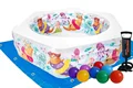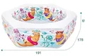 از ویژگی های این استخر بادی چند لایه بودن دیواره است که هر لایه دارای دریچه باد مجزا می باشد. هم چنین بر روی این محصول تصاویر فانتزی و جذابی از موجودات و حیوانات وجود دارد که زیبایی استخر بادی را دوچندان می کند و کودک از دیدن آن ذوق زده خواهد شد. کفی این محصول به صورت بادشو و حبابی است تا پاهای کودک در زمان بازی اذیت نشده و در صورت تمایل نیز کودک می تواند به راحتی در کف استخر بادی بنشیند. کفی استخر بادی نیز دارای یک دریچه باد بوده که به راحتی محصول را آماده استفاده می کند. برای راه اندازی این محصول لازم است تا از یک پمپ باد اینتکس کمک بگیرید. انواع پمپ های باد دستی و برقی و پدالی در سایت سنتر اینتکس موجود هستند که برای باد زدن استخر بادی می توانید از آن استفاده نمایید.