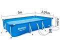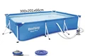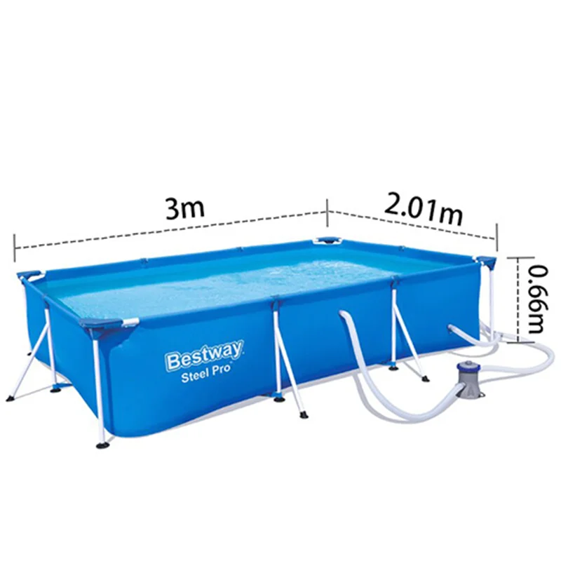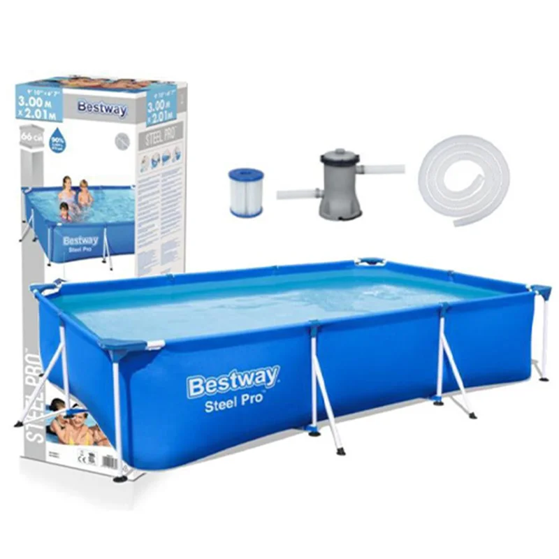 استخر پیش ساخته فریمی مستطیلی 300*201 بست وی بهترین گزینه برای ایجاد تفریحات آبی در فضا های شخصی می باشد که می توان به راحتی آن را ایجاد نمود و در نهایت توانست ساعات خوشی را سپری کرد. این محصول با قیمت مناسب ارائه می گردد و می تواند با استحکام بالایی که دارد بر روی سطوح مختلف اجرا شود و در نهایت مورد بهره برداری آسان قرار گیرد. این محصول بدنه ای جادار دارد اما به دلیل این که در مقایسه با سایر استخر های پیش ساخته کمجا می باشد می توان آن را در حیاط های بزرگ نیز مورد اجرا قرار داد و از آن بهره مند شد و توانست در فصول گرم سال امکانات داشتن بهترین تفریحات آبی را برای کودکان مهیا کرد. این استخر پیش ساخته با پایه های محکم و استوار در اختیار افراد می باشد و بر روی سطوح قرار می گیرد و امکان قرار گیری آن بر روی چمن نیز قرار دارد.