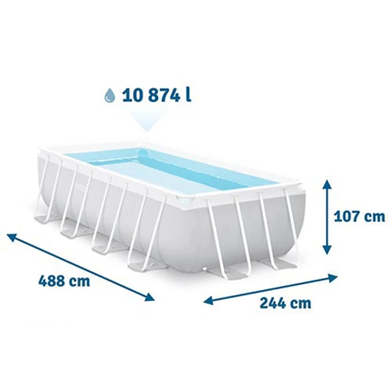 استخر پیش ساخته مستطیلی بزرگ 244*488 خانوادگی بزرگ و جادار در اختیار تمامی علاقه مندان قرار می گیرد تا با کم ترین هزینه بتوانند محیطی بی عیب و نقص برای تفریحات مهیج آبی ایجاد سازند. این محصول بی نظیر از نظر کیفی در درجه بالایی قرار دارد و دارای بدنه ای ضخیم و مقاوم می باشد که با داشتن طول عمر بالا می تواند بهترین لحظات را برای افراد ایجاد سازد. استخر پیش ساخته محصولی فصلی به حساب می آید که افراد باید نکات مورد نظر در خصوص نگه داری و استفاده درست از محصول را رعایت کنند. چرا که در زمان ایجاد محصول در فضای باز بدنه در معرض آسیب های مختلف قرار می گیرد که با جلوگیری از آن ها محصول به خطر نمی افتد و می توان آن را در طی سال های زیاد مورد بهره برداری قرار داد. استخر پیش ساخته مد نظر دارای بدنه ای منعطف از جنس برزنت است که باید از یخ زدگی در امان باشد.