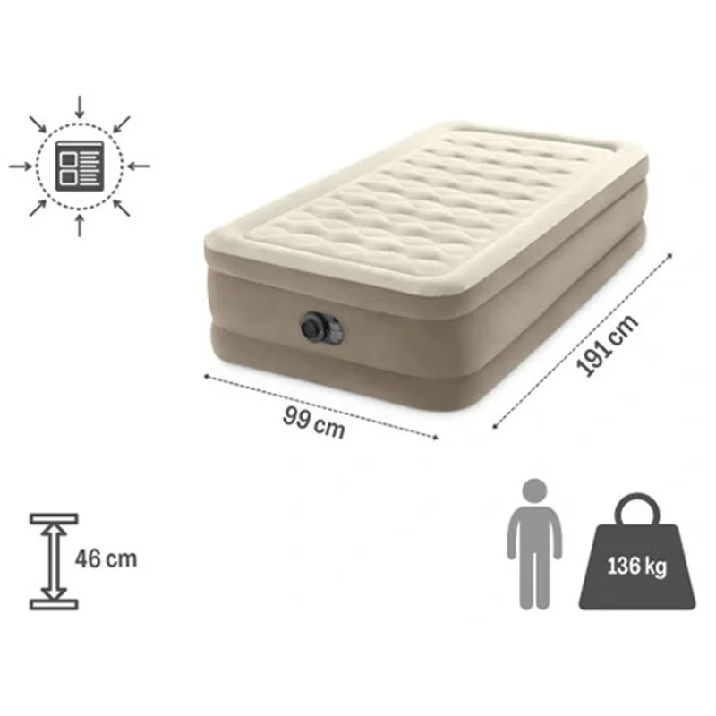 خرید با کیفیت ترین تخت بادی تکنفره اصل اینتکس مدل Ultra Plush Air Mattress با قیمت مناسب و طول عمر بالا دارای قابلیت راه اندازی آسان در کم ترین زمان از فروشگاه مرکزی سنتر اینتکس