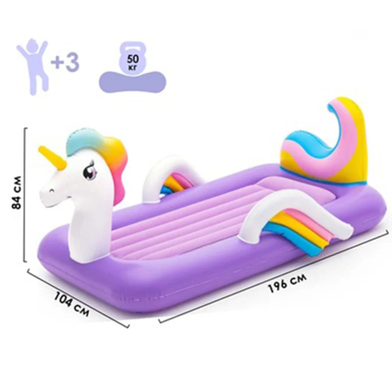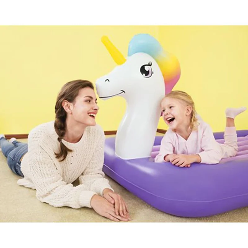 تخت بادی یونیکورن کودک 67713 دارای طراحی بی نظیر و حرفه ای است که زیبایی چشمگیری را ایجاد کرده است تا کودکان با خیالی آسوده بتوانند این محصول دلخواه را خریداری کنند. تخت بادی وسیله ای راحتی برای به آرامش رسیدن و خواب می باشد که در نتیجه به همراه داشتن آن در مسافرت و گردش لازم و ضروری است. به این ترتیب در هر موقعیت مکانی کودکان می توانند بر روی این تخت بادی به استراحت و آرامش برسند و در نتیجه دچار هیچ مشکلی نیز نشوند. در این صورت اقامت در شب نیز برای آن ها میسر می شود و می توانند بر روی محصولی که در نهایت جذابیت ساخته شده است قرار بگیرند.