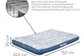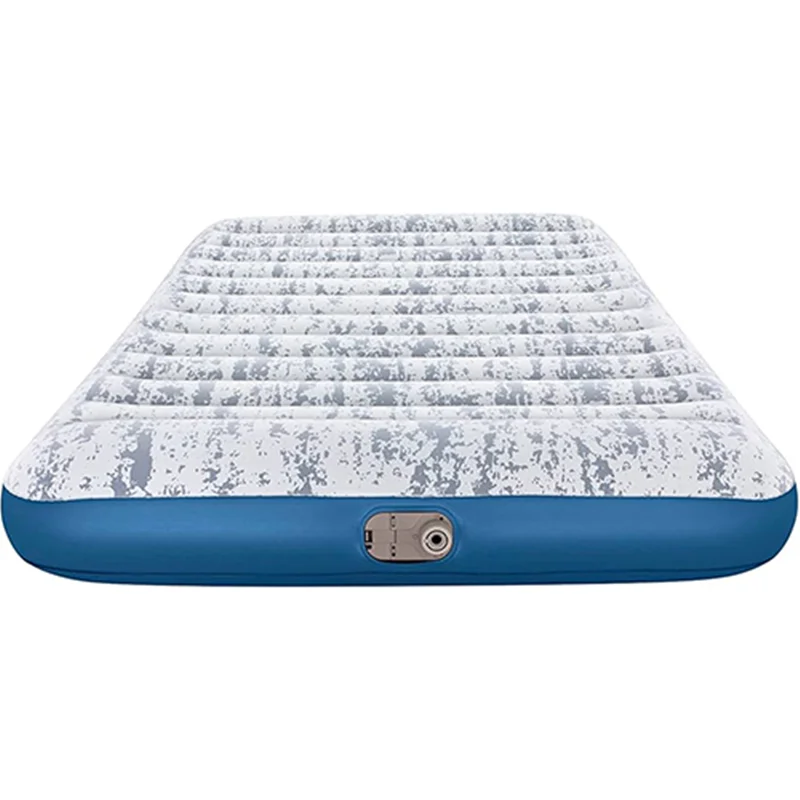 یکی از مشخصات این محصول برخورداری از پمپ باد برقی می باشد. این محصول را می توانید به راحتی توسط این پمپ راه اندازی کرده و پس از استفاده نیز در زمان کوتاهی تخلیه کنید و در بسته بندی قرار دهید. به این ترتیب این محصول فضای بسیار کمی را اشغال می کند. سطح این تشک بادی به صورت مواج و با خطوط موازی و فرو رفته طراحی شده است که علاوه بر راحتی و انعطاف بیش تر، مانع از تعریق فرد در زمان خواب شده و هوا به خوبی مابین بدن و سطح تشک در جریان خواهد بود. در قسمت بالای این محصول نیز انحنای سطح تشک بیش تر بوده و به صورت یک بالش بادی سرخود طراحی شده است. بدنه این محصول ضخامت مناسبی داشته که به سادگی دچار آسیب نشده و قسمت داخلی این تشک بادی به صورت محفظه های هوا طراحی شده است تا بیش ترین انعطاف و راحتی را در زمان استفاده داشته باشد.