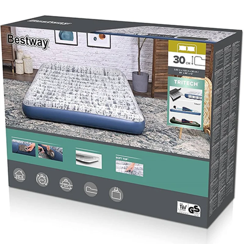تشک بادی دو نفره بست وی مدل Tritech Airbed Queen با پمپ برقی محصولی راحت و بی نظیر برای استفاده در مسافرت و کمپینگ بوده و حتی به عنوان تشک مهمان در منازل نیز قابل استفاده می باشد. این تشک بادی با برخورداری از ویژگی های بی نظیر و مشخصات خاص توانسته محبوبیت بالایی را به دست بیاورد. این محصول با ابعاد استاندارد تهیه شده است که برای استفاده دو نفر بزرگسال مناسب بوده و فضای کافی را دارا است.