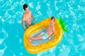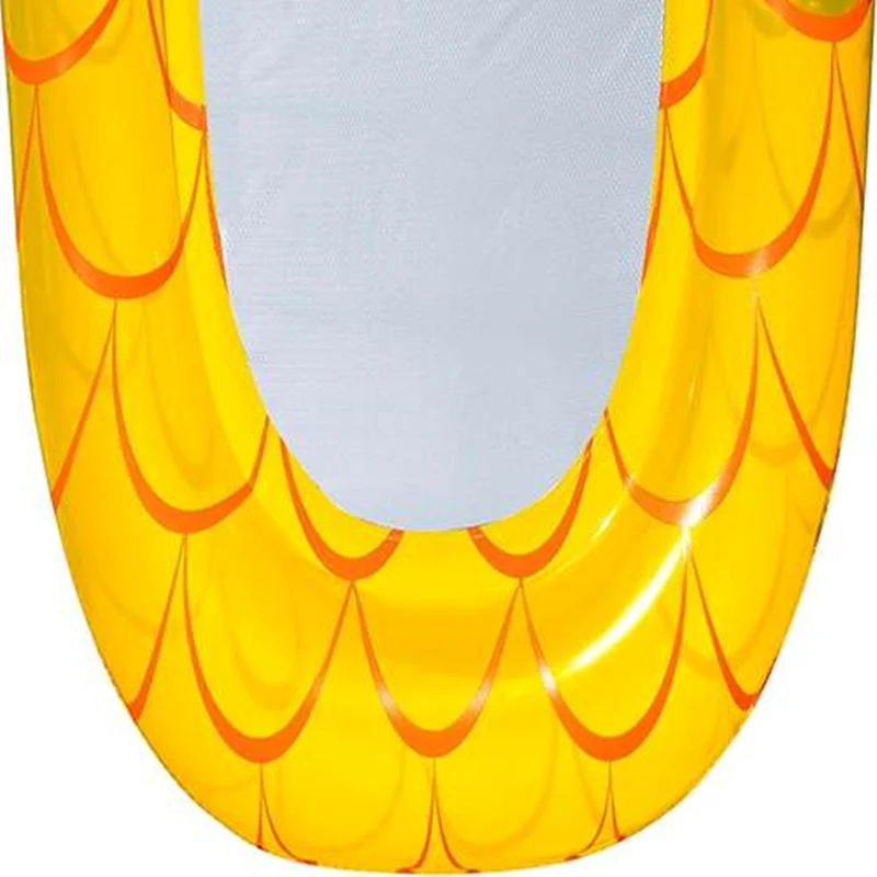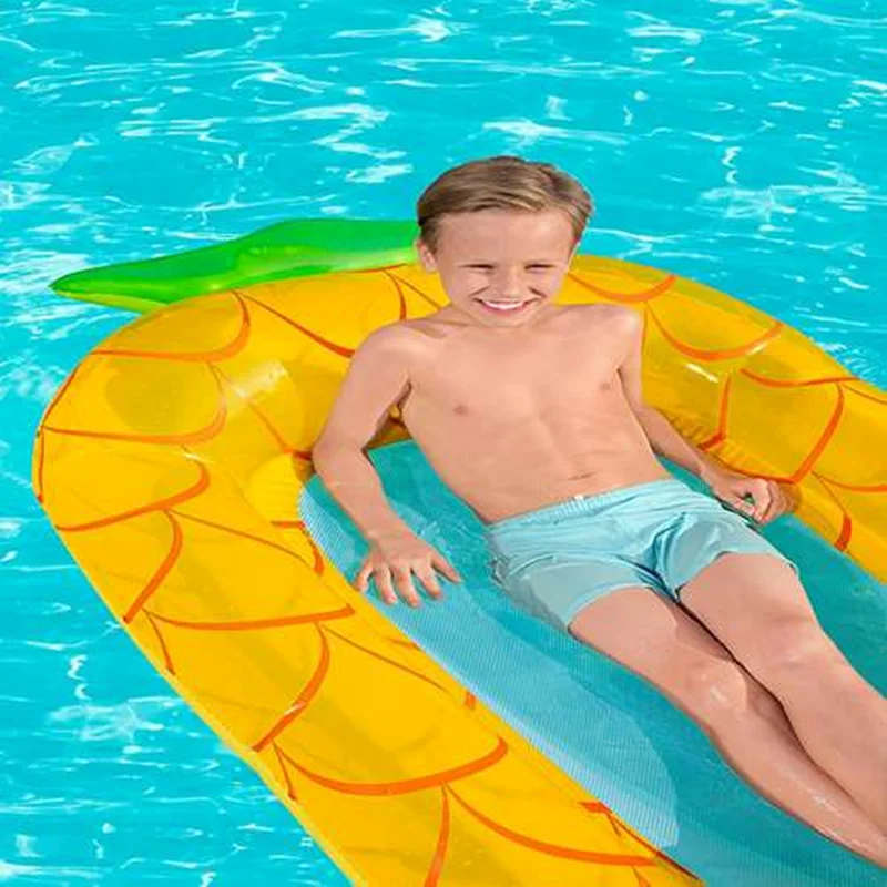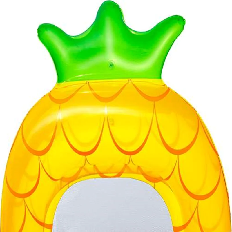 تشک بادی روی آب بزرگ طرح آناناس یکی از بهترین محصولات بادی است که شرایط را برای داشتن تفریحات آبی مهیج ایجاد می کند و برای رده سنی بزرگسال تولید شده است که می توان با رضایت کامل از آن استفاده کرد و لذت برد. این محصول که تولید شرکت بست وی می باشد از رنگبندی شاد و طراحی فانتزی برخوردار است که زیبایی زیادی دارد و می توان از آن بهره کافی را برد. این محصول توانسته رضایت مخاطب را جلب کند و جزو محبوب ترین محصولاتی است که با وزن کم و قابلیت حمل آسان در اختیار افراد می باشد و تفریحات مهیج آبی را رقم می زند. در بخش مرکزی بدنه قسمتی توری وجود دارد که به نوبه خود هم وزن محصول را کم می کند و هم می تواند سبب خروج کلی آب از روی محصول شود تا آب در این قسمت باقی نماند و بتوان وزن کم محصول و حالت شناور آن را حفظ کرد.