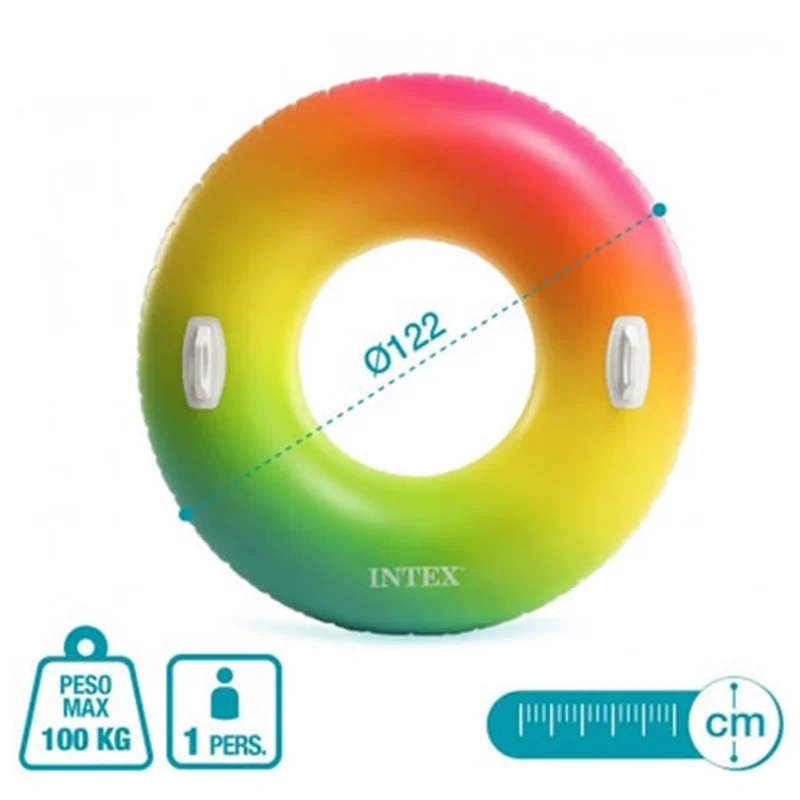 حلقه شنا بادی اینتکس مدل رنگین کمان یکی از محصولات جذاب و بی نظیر تولید شده توسط شرکت بزرگ اینتکس است که با ابعادی استاندارد و مناسب برای استفاده کودکان و نوجوانان طراحی شده است. این حلقه شنا بادی به صورت رنگی با طراحی شاد ساخته شده است که مورد پسند کودکان قرار گرفته و ظاهری بسیار عالی دارد.