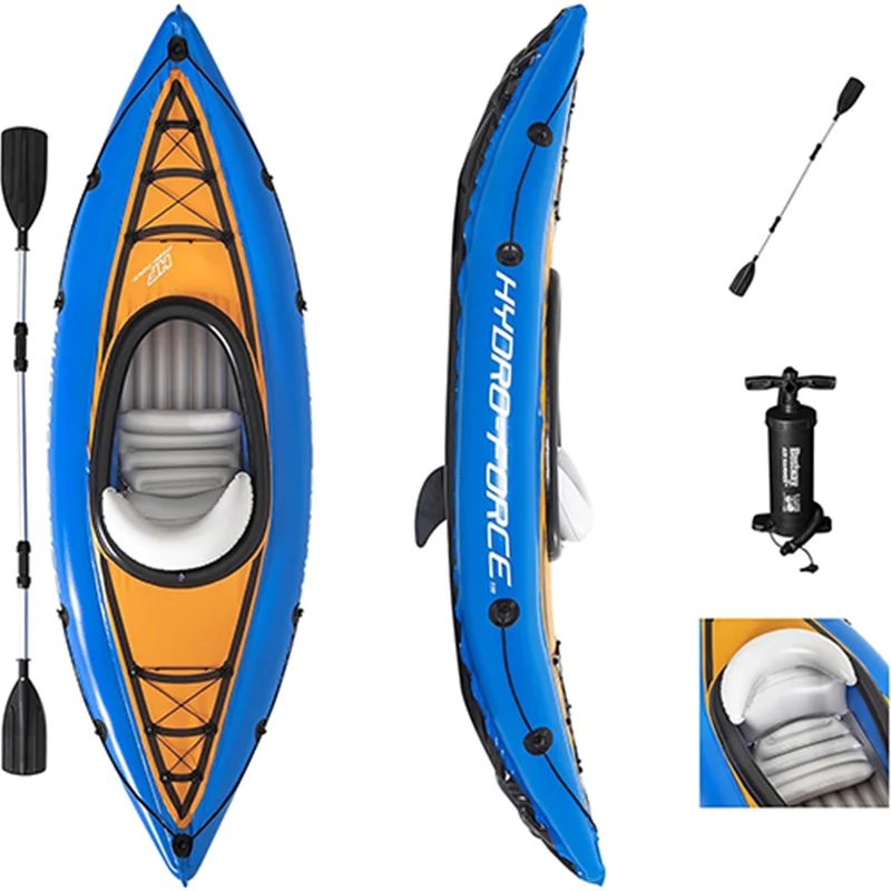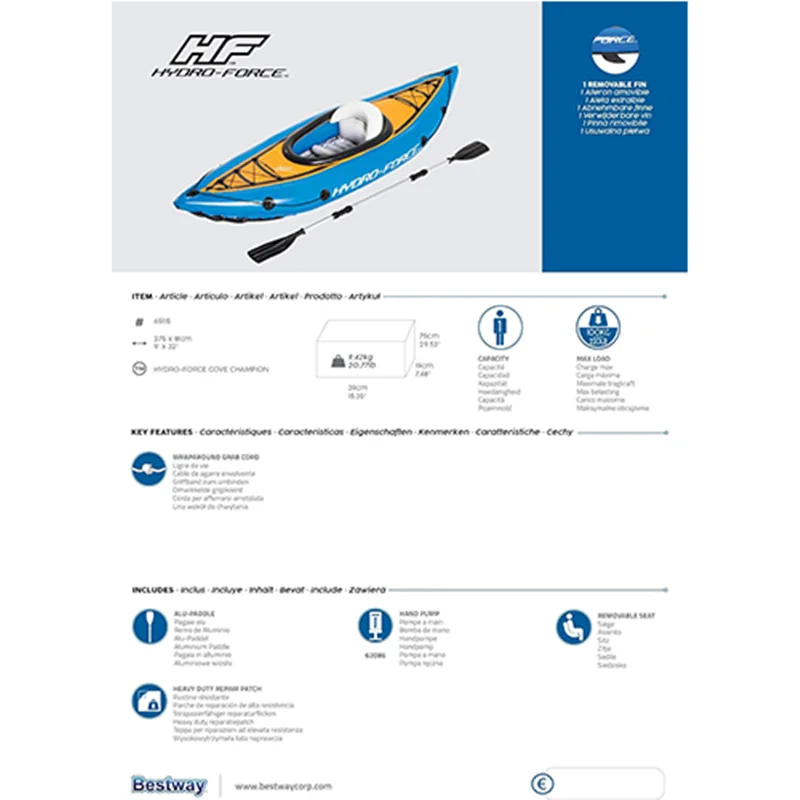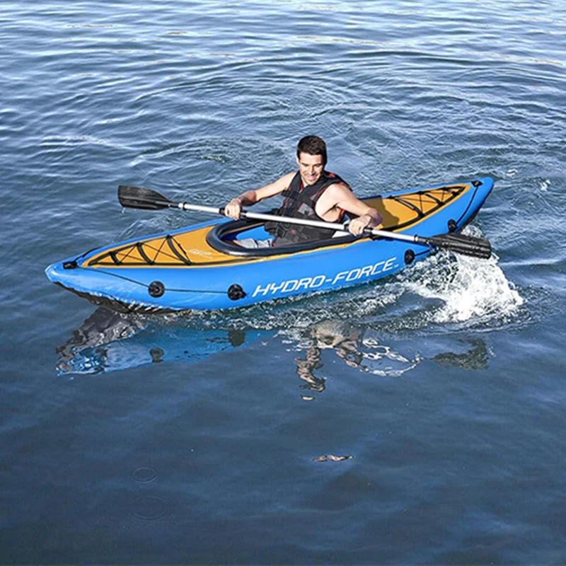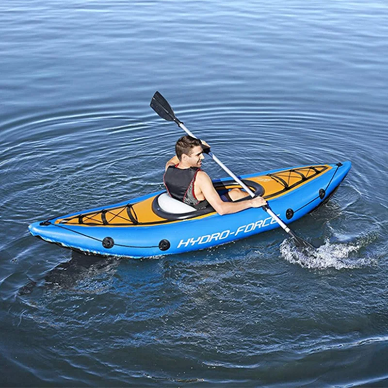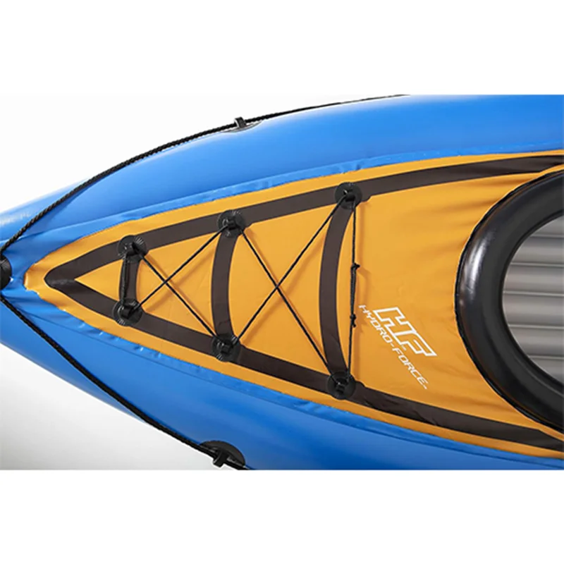 قایق بادی کایاک hydro-force بست وی تکنفره به جهت داشتن طراحی حرفه ای و بی عیب و نقص توانسته رضایت مخاطب را به خوبی جلب کند و جزو برترین نمونه از محصولات بادی باشد که به صورت مقاوم در برابر عوامل مختلف قرار می گیرد و می تواند مورد بهره برداری واقع شود. این محصول دارای بدنه ای کشیده و نوک تیز است که بخش انتهایی آن نیز دارای تیزی می باشد. این شرایط می تواند به راحتی مسیر آب را بگشاید و مسافت طولانی را با سرعت و شتاب مناسب بپیماید. در این صورت می توان از آن در مسابقات قایقرانی نیز استفاده کرد و شاهد داشتن بهترین موقعیت شد. قایق بادی کایاک دارای ظرفیت یک نفره است که دارای نشیمن مشخص به همراه تکیه گاه بادی و مواج می باشد و می تواند راحتی زیادی را ایجاد سازد.