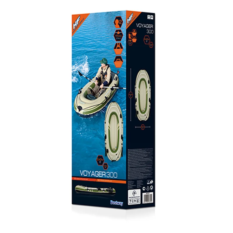 قایق بادی Voyager دو نفره بست وی 300 جدید ترین محصول شرکت بست وی می باشد که با ساختاری بی عیب و نقص و مقاوم توانسته رضایت مخاطب را به خوبی جلب کند و جزو محبوب ترین محصولات بادی باشد که می توان از آن در طی سال های زیاد استفاده کرد. بدنه با دقت خاصی طراحی شده است و از بخش های مفید تشکیل شده است تا بتوان به راحتی از آن استفاده کرد و توانست ساعات خوشی را سپری کرد. از این محصول در محیط آب های آرام استفاده می شود و محصولی منحصر به فرد است تا بتوان جهت گشت و گذار در رودخانه و دریاچه و غیره از آن بهره برداری نمود و توانست تجربه ای ویژه از چنین حضوری را کسب کرد.