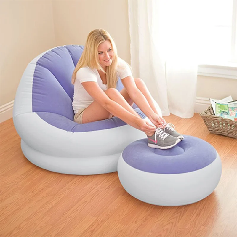 مبل بادی با زیر پایی بنفش 68572 از سری محصولات جذاب و زیبای اینتکس است که با بدنه بادی برای به آرامش رسیدن بدن افراد طراحی و تولید شده است. بر روی این محصول همواره می توان راحتی و آرامش را به دست آورد و در نهایت منحصر به فرد بودن به بهترین موقعیت دست پیدا کرد. در نتیجه گزینه ای مناسب جهت داشتن استراحت و یا مطالعه و تماشای فیلم است. به دلیل زیبایی ساختار در این مبل بادی افراد می توانند آن را در دکوراسیون داخلی منزل خود به کار ببرند. از آن جایی که رنگ تشکیل دهنده بدنه محصول شاد و روشن می باشد بهترین گزینه برای استفاده از آن اتاق خواب شخصی افراد است و می توانند در شرایط مختلف از آن بهره مند شوند.