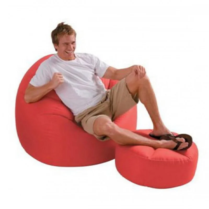 مبل بادی قرمز اینتکس با زیر پایی 68558 بهترین محصولی است که هم در داخل منزل مورد استفاده قرار می گیرد و هم می توان آن را در زمان رفتن به مسافرت و گردش با خود به همراه داشت. در نتیجه یکی از خاص ترین نمونه از محصولات بادی و راحتی است که مورد توجه عده زیادی قرار گرفته است و تمایل به داشتن آن دارند. به دلیل وجود زیر پایی در این مجموعه از محصولات بادی افراد راحتی بیش تری حس می کنند و می توانند در عین آرامش به تماشای فیلم و یا مطالعه و مانند این ها بپردازند. از این رو مبل بادی بدنه ای سازگار با افراد استفاده کننده دارد و می تواند بهترین شرایط را برای آن ها مهیا سازد. ساختار بدنه دارای تکیه گاه می باشد که برای قرار گیری ایمن ستون فقرات ضروری است. همچنین در کنار بدنه زیر پایی قرار دارد تا با قرار دادن پا بر روی آن بتوان بهترین موقعیت را به دست آورد و از آن لذت برد.