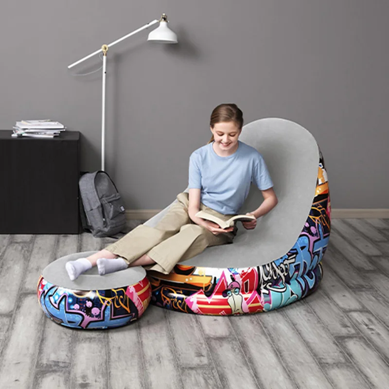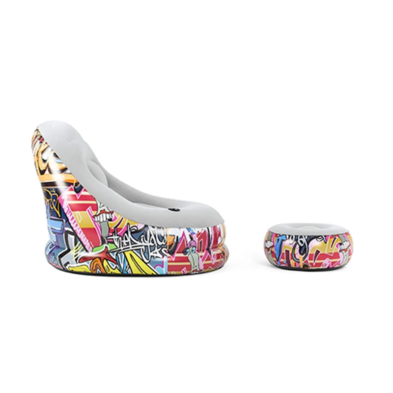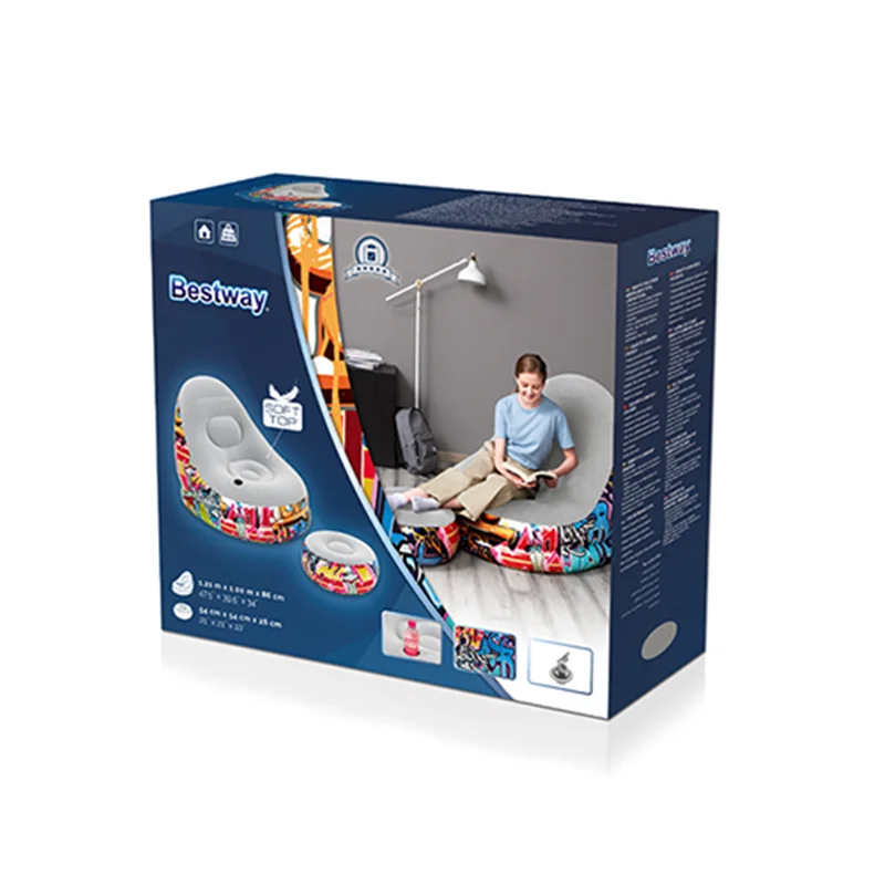 مبل بادی گرافیتی زیرپایی دار بست وی مدل 75076 یکی از سری تولیدات لوکس و جذاب کمپانی بست وی است که سعی شده تا در طراحی این محصول هر آن چه که یک مبل بادی لوکس می تواند داشته باشد را پیاده سازی کرده باشند. اگر به ظاهر این مبل بادی دقت کنید در بخش های کناری این محصول طرح های گرافیتی و زیبایی را می توانید مشاهده کنید که این مسئله سبب جذابیت دو چندان این محصول شده است. علاوه بر این ها این طرح ها بیشتر در سنین جوان و نوجوان پرطرفدار بوده است که فرد می تواند با در اختیار داشتن این محصول جلوه ای خاص را به خانه و اتاق خود ببخشد. در رابطه با نوع طراحی این مبل نیز باید اشاره داشته باشیم که این کالا دارای یک تکیه گاه استاندارد و بلند است که به بهترین شکل ممکن می توانید بر روی این ناحیه تکیه داده و لذت ببرید.