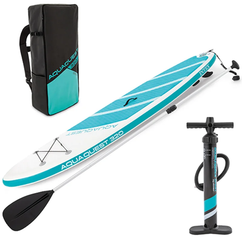 پدل برد اینتکس مدل AquaQuest 320 حرفه ای از سری محصولات باکیفیت و مرغوب است که برای قایق رانی حرفه ای مورد استفاده قرار می گیرد. به این ترتیب جزو محصولاتی می باشد که افراد حرفه ای که در زمینه شنا و تفریحات آبی فعالیت دارند آن را خریداری می کنند و لحظات خوشی را سپری می سازند. این محصول از مزیت های زیادی برخوردار می باشد که علاوه بر داشتن کیفیت و مرغوبیت بدنه دارای کارایی دلخواه نیز می باشد و دارای استاندارد ترین طراحی بوده است. به این ترتیب فروش بالایی دارد و افراد زیادی به سمت خرید آن کشیده می شوند. پدل برد محصولی به شکل تخته شنا می باشد که به جهت موج سواری انتخاب می شود و مورد بهره برداری قرار می گیرد. در نتیجه در زمان خروشان بودن آب دریا می توان از آن بهره برداری کرد و بهترین اوقات را سپری نمود.