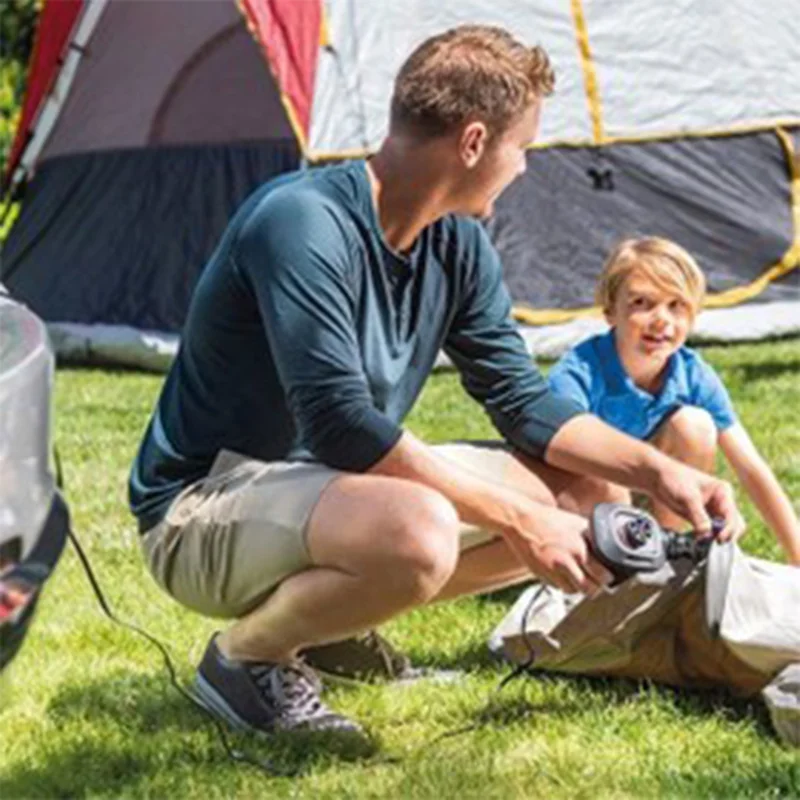این محصول برای استفاده در مسافرت و گردش طراحی شده است و برای افراد علاقه مند به طبیعت گردی ایده آل می باشد. شما در کمپینگ و گردش با استفاده از آن می توانید به راحتی لوازم بادی از قبیل تشک بادی، مبل بادی و ... را به راحتی راه اندازی نمایید. هم چنین قایق های بادی اینتکس به راحتی توسط این پمپ باد، آماده استفاده خواهند شد. پس از استفاده نیز با این پمپ باد می توانید محصول را تخلیه کرده و جمع کنید. این محصول دارای سری فندکی است که به قسمت فندک ماشین متصل شده و از طریق برق خودرو، محصولات را راه اندازی می کند. رنگ این پمپ باد مشکی بوده و دارای چند سری مختلف برای باد زدن لوازم بادی مختلف می باشد.