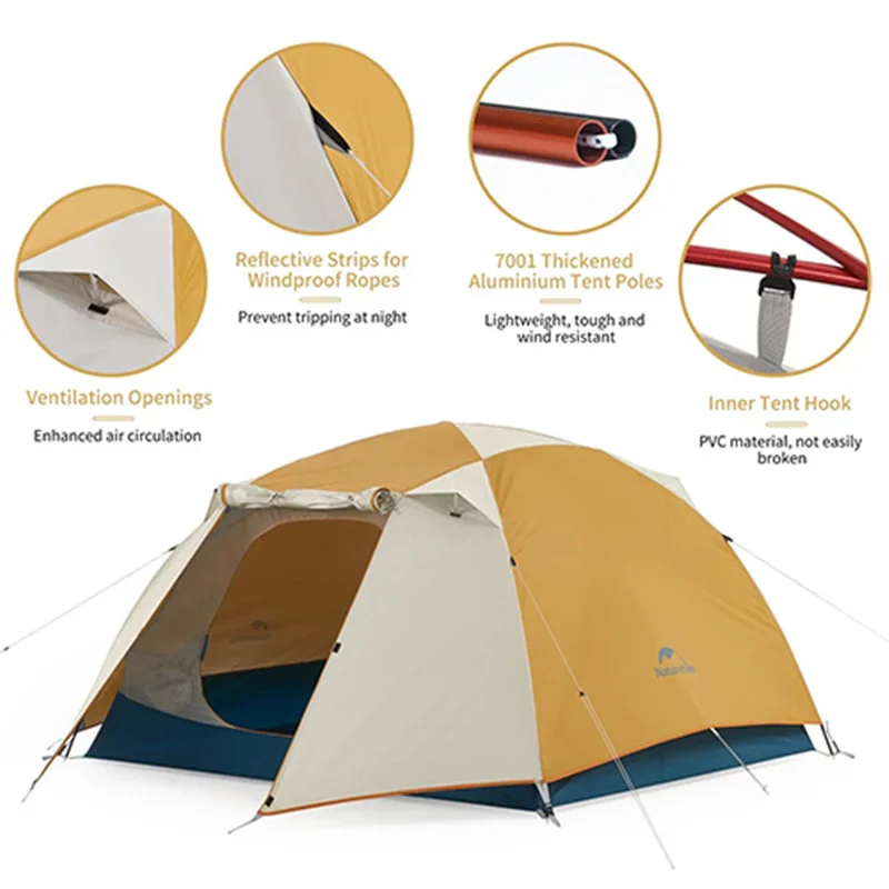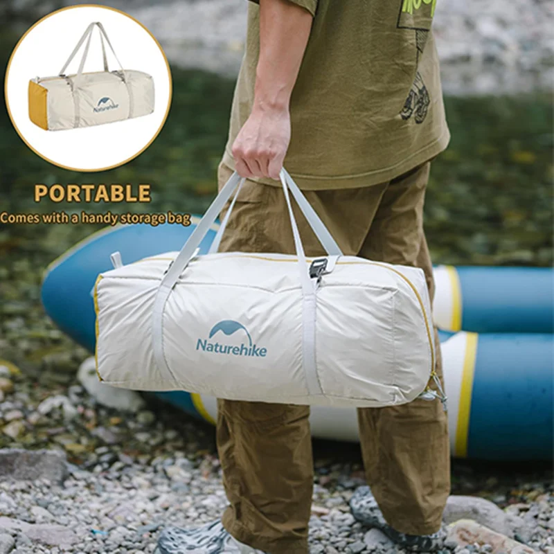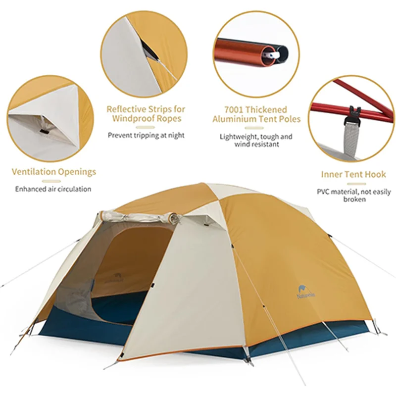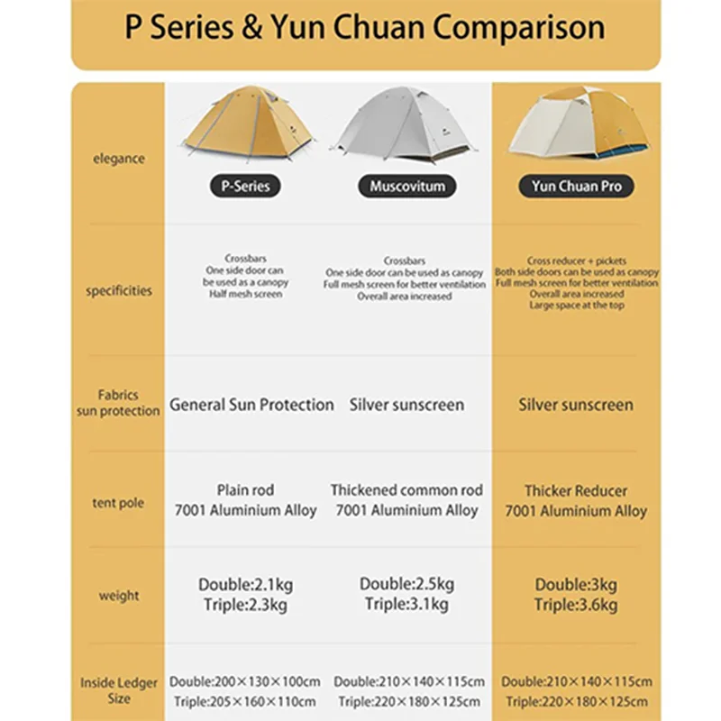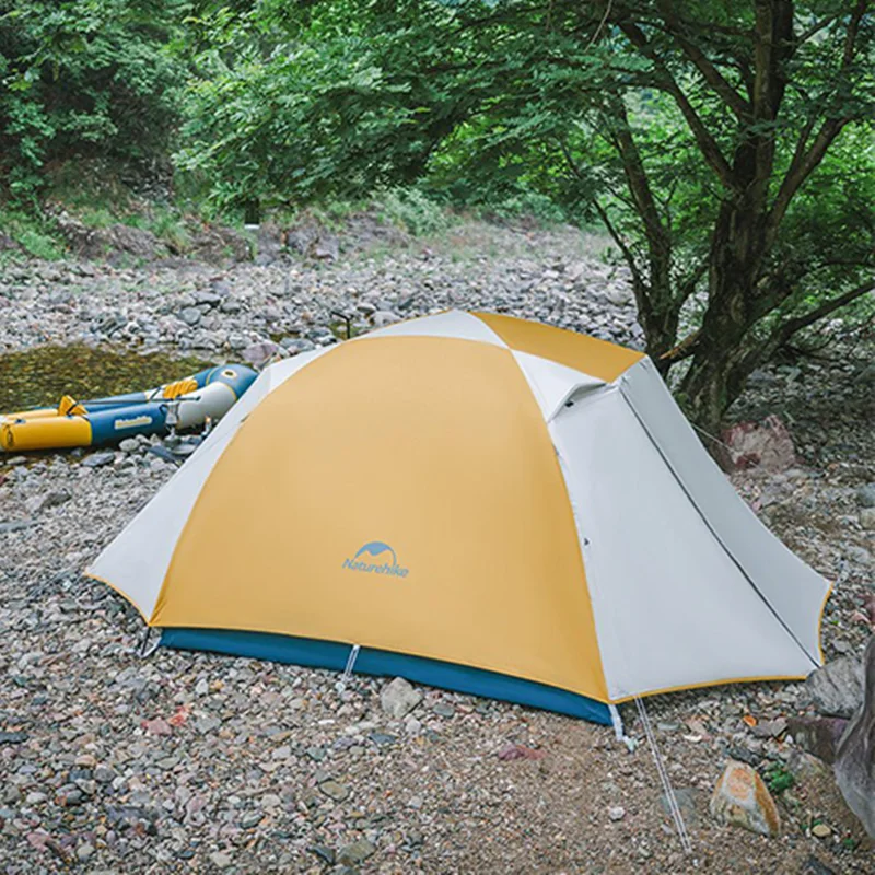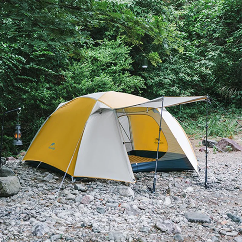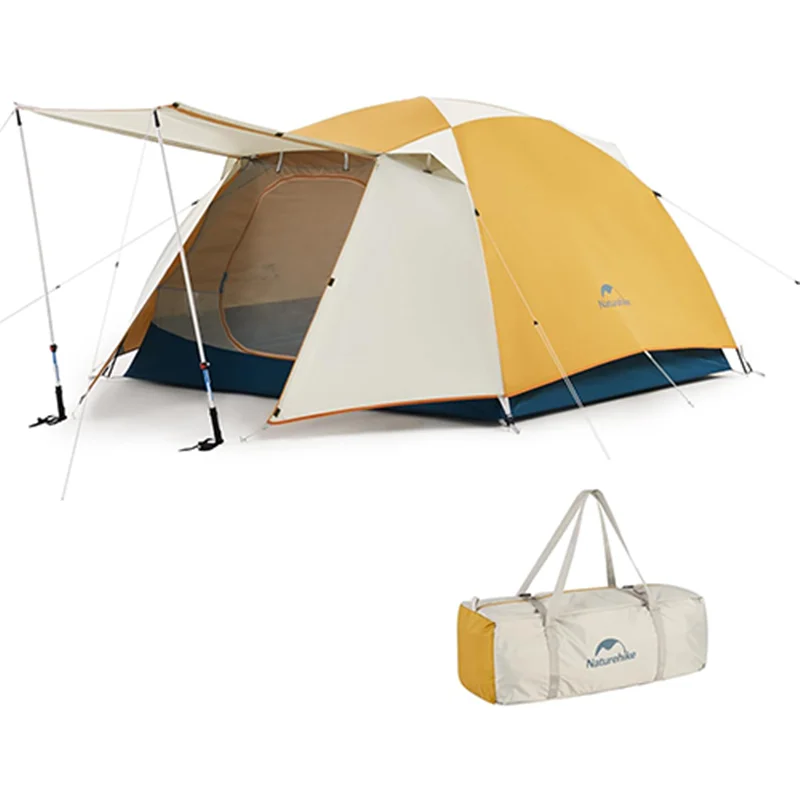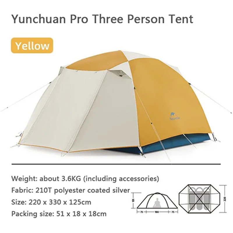 چادر مسافرتی عصایی کمپینگ سه نفره نیچرهایک پلاس پرو YUNCHUAN SERIES TENTS گزینه ای مناسب برای شرکت در کمپینگ های فصل مختلف سال می باشد که با بدنه جادار می تواند برای خانواده های سه نفره مورد استفاده قرار گیرد. با داشتن این محصول اقامت در شب نیز امکان پذیر می باشد و می توان در تمامی فصول سال از آن بهره برداری کرد و در نهایت توانست ساعات خوشی را در ایمن ترین حالت ممکن کسب نمود. چادر مسافرتی دارای سازه های عصایی می باشد که افراد می توانند به راحتی و در کم ترین زمان محصول را راه اندازی کنند و از داشتن آن لذت ببرند. سازه ها به صورت تاشو در بسته بندی و ساک حمل قرار می گیرند و کمجا هستند تا در نهایت با باز شدن آن ها بتوان اسکلت اصلی چادر مسافرتی را ایجاد کرد و در آخر بدنه را بر روی آن قرار داد.