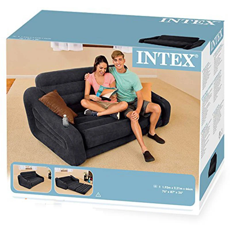 کاناپه بادی تختشو دونفره اینتکس 68566 یکی دیگر از کاربردی ترین تولیدات کارخانه اینتکس برای استفاده در محیط هایی نظیر منزل و یا محل کار بوده که به دلیل کارایی بالایی که داشته توانسته در میان مصرف کنندگان محترم به فروش قابل قبولی دست یابد. از این محصول می توانید برای قرار در مقابل تلویزیون در خانه و استراحت های میان روز استفاده کرده و یا برای دفتر کار خود در نظر بگیرید. همانطور که از نام این محصول مشخص بوده بدنه اصلی آن در زمان راه اندازی همانند یک تخت عمل کرده و برای خوابیدن استاندارد بوده و می توانید در صورت نیاز آن را به داخل خم کرده تا بعد از جمع اوری به صورت یک کاناپه شیک برای استفاده مهیا شود.